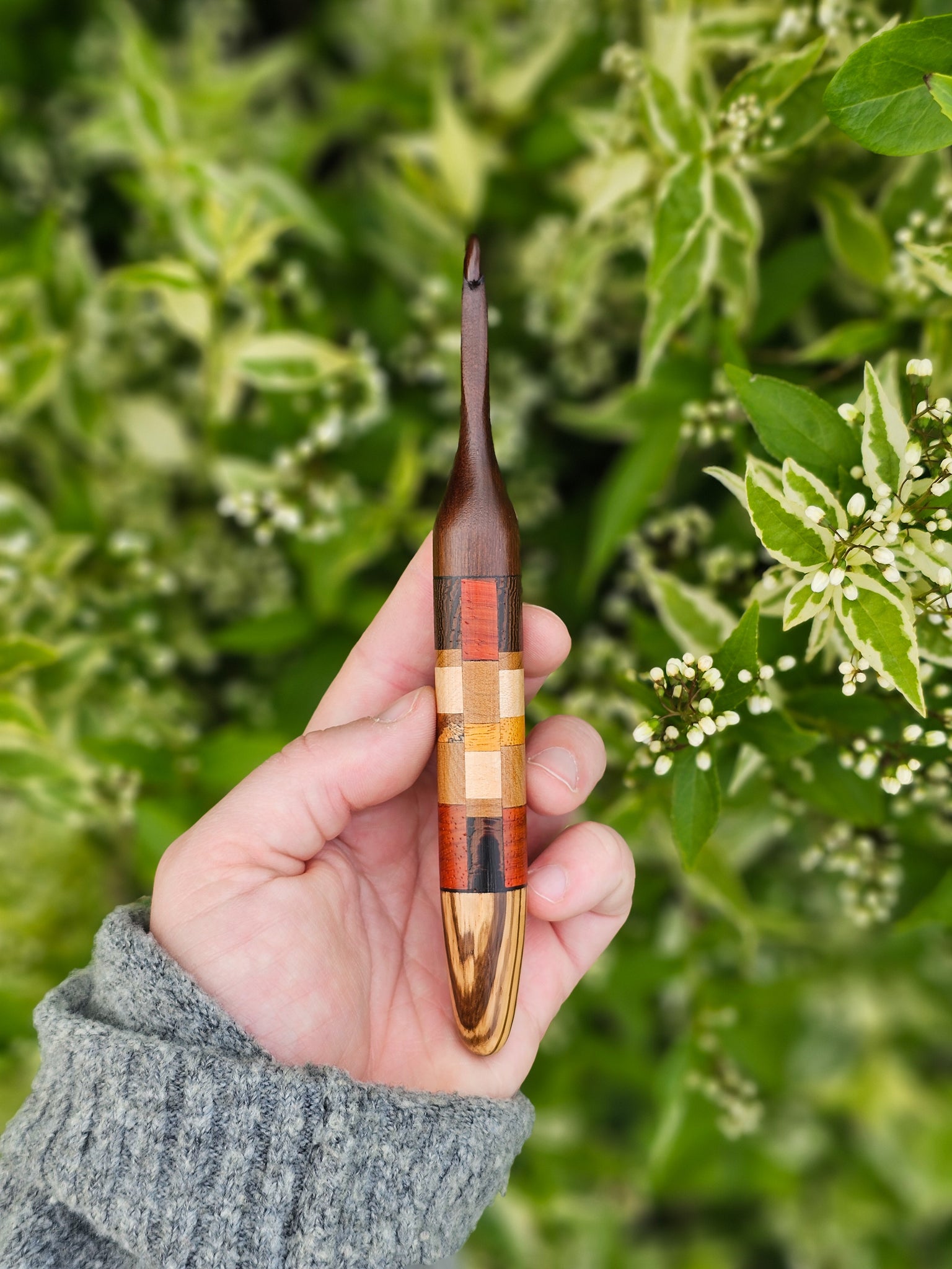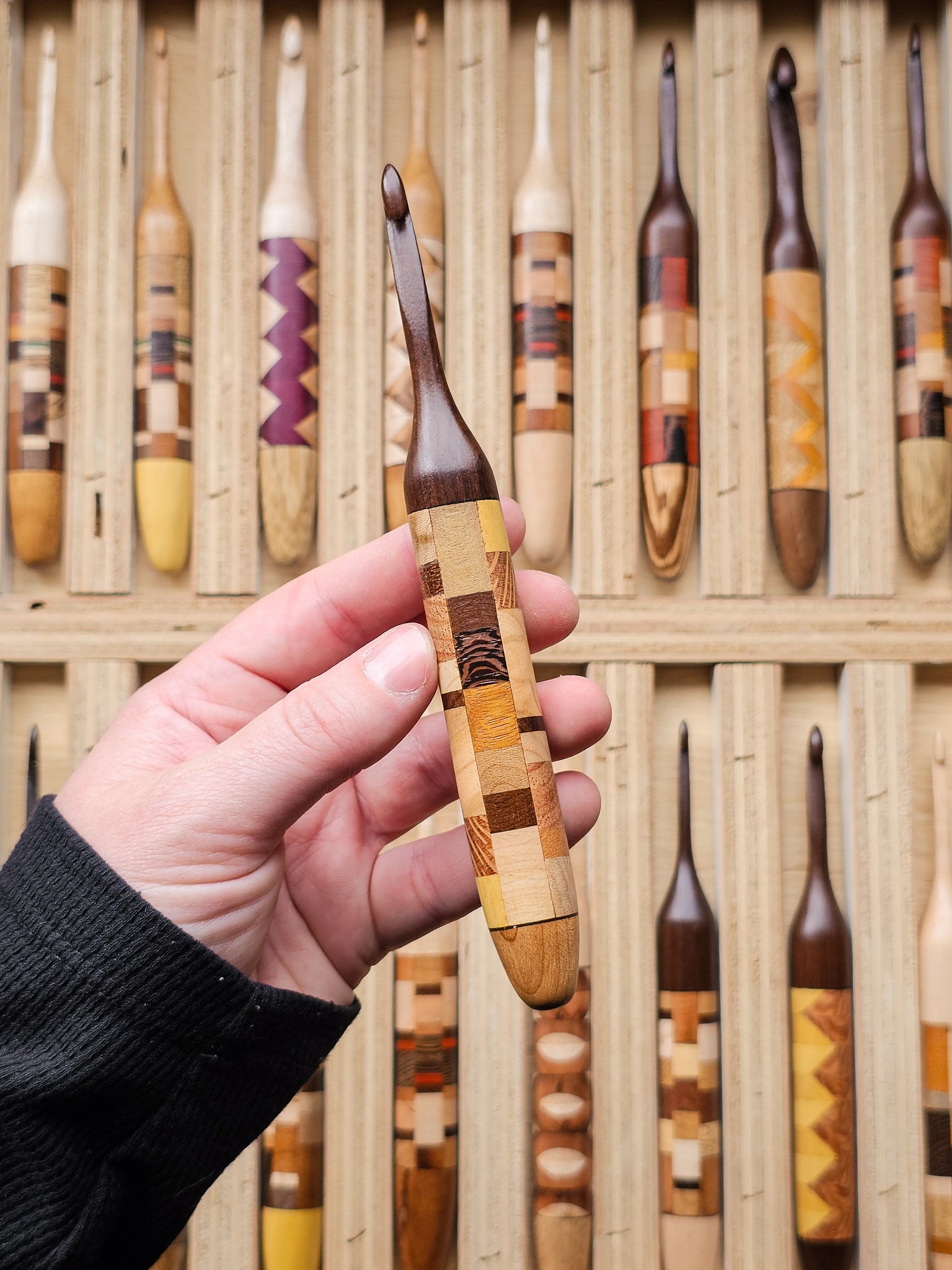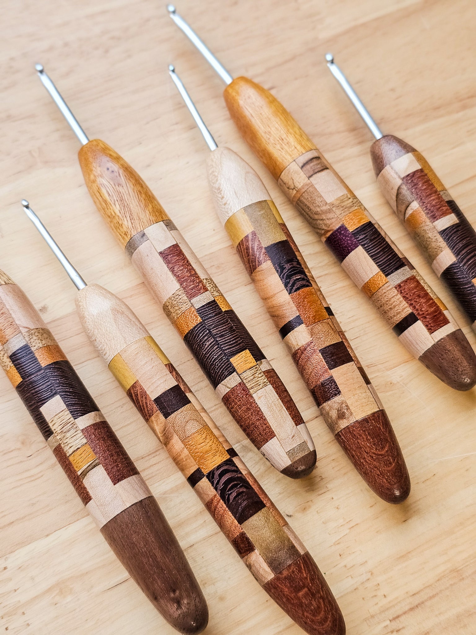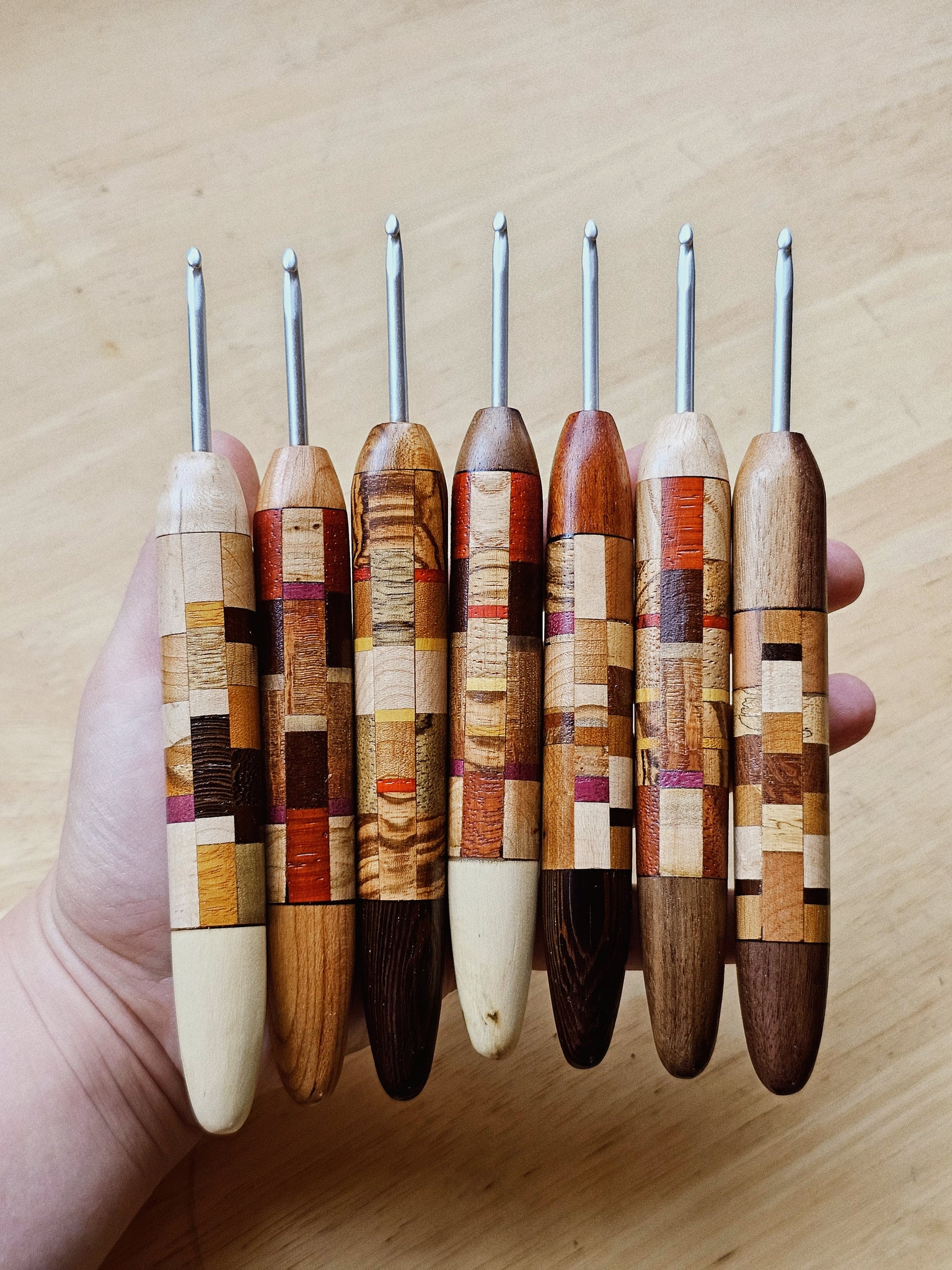 This listing is for PRE-ORDERING a PATCHWORK mystery crochet hook. This collection was a fun way for us to go through and use our bins (and bins, and bins...) of wood scraps that have accumulated over the years. Just select your size, and we'll create your very own Patchwork crochet hook! If you have any wood preferences, please note them in the Special Requests box - while we can't guarantee anything, we'll try our very best to make your hook dreams come true.