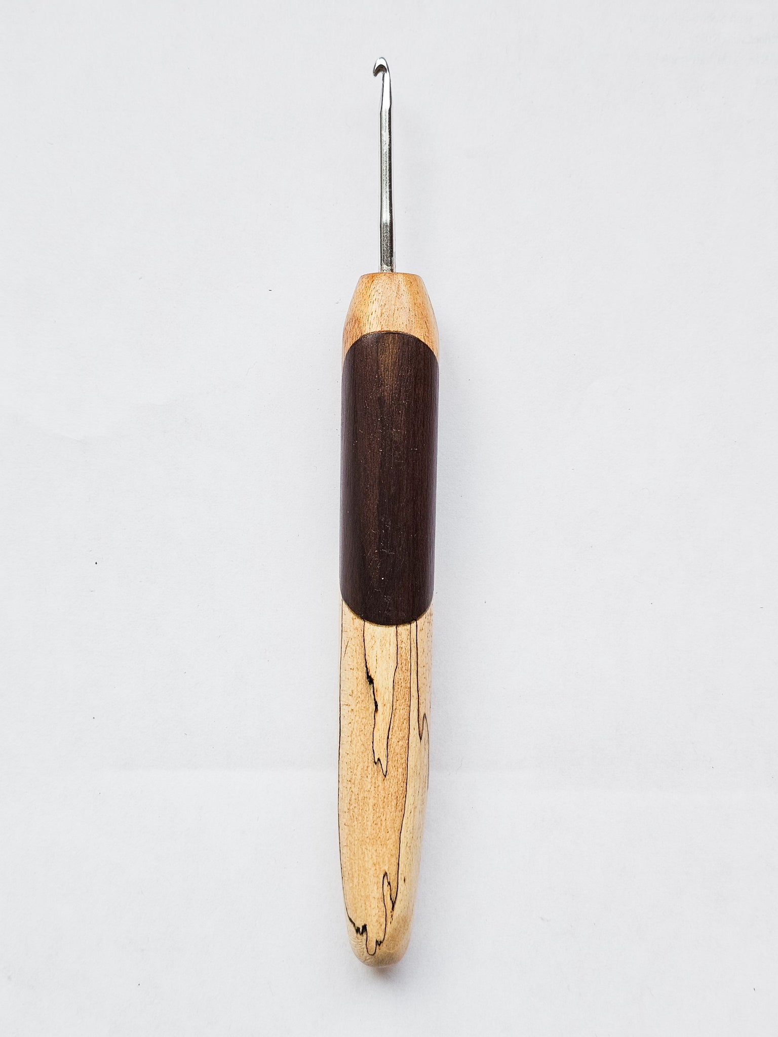 03.00mm Canary + Wenge + Spalted Maple Art Deco Metal Crochet Hook (Item #132)