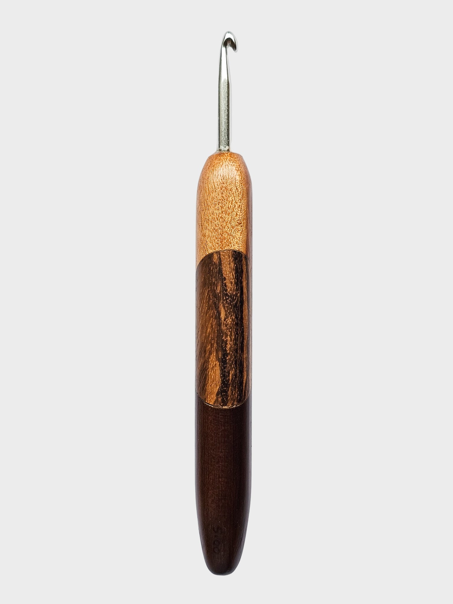 05.00mm Tigerwood + Zebrawood + Dark Roasted Maple Art Deco Metal Crochet Hook (Item #110)