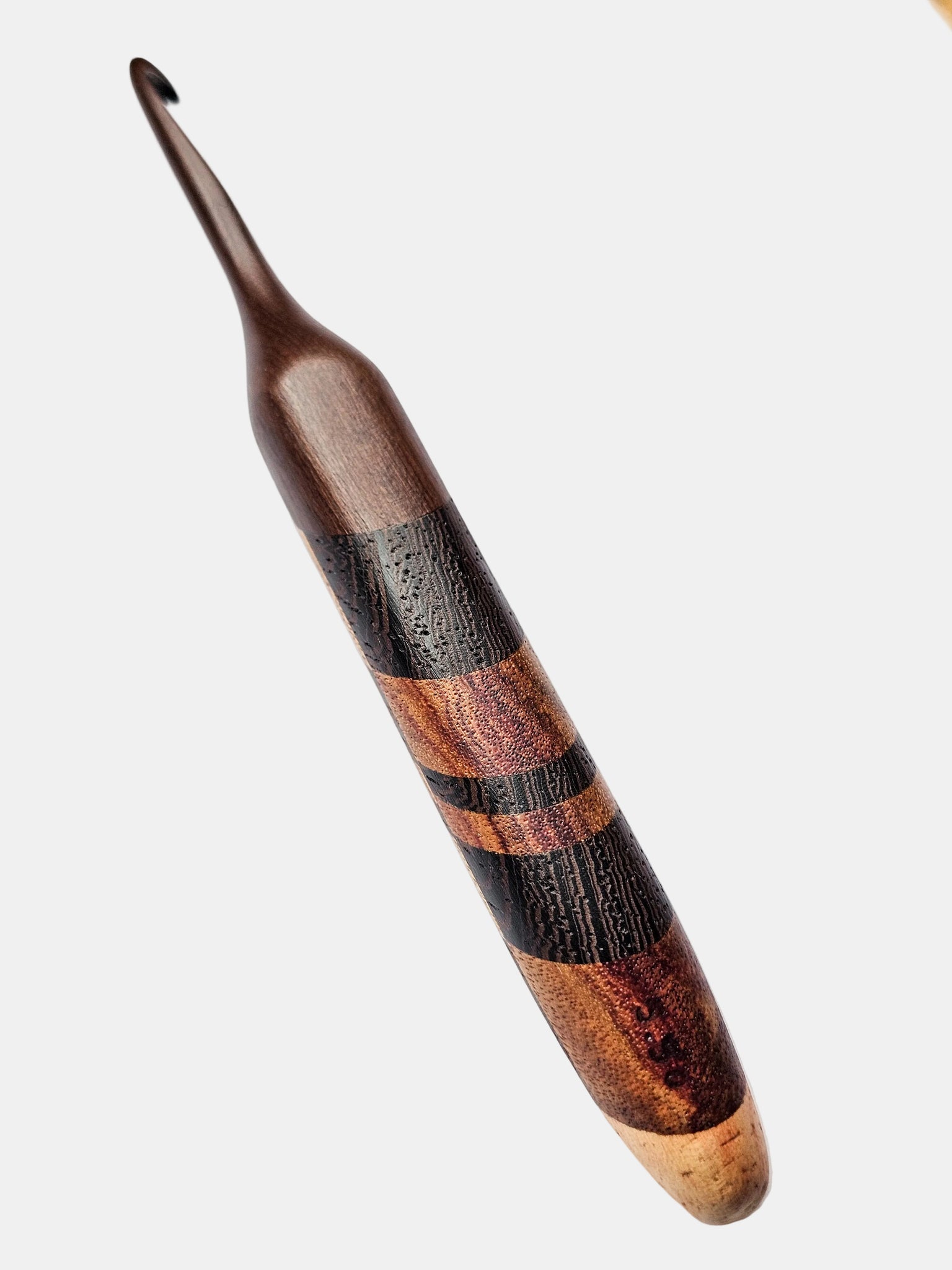 05.50mm Dark Roasted Maple + Wenge / Canary Diagonal Checker Crochet Hook (Item #189)