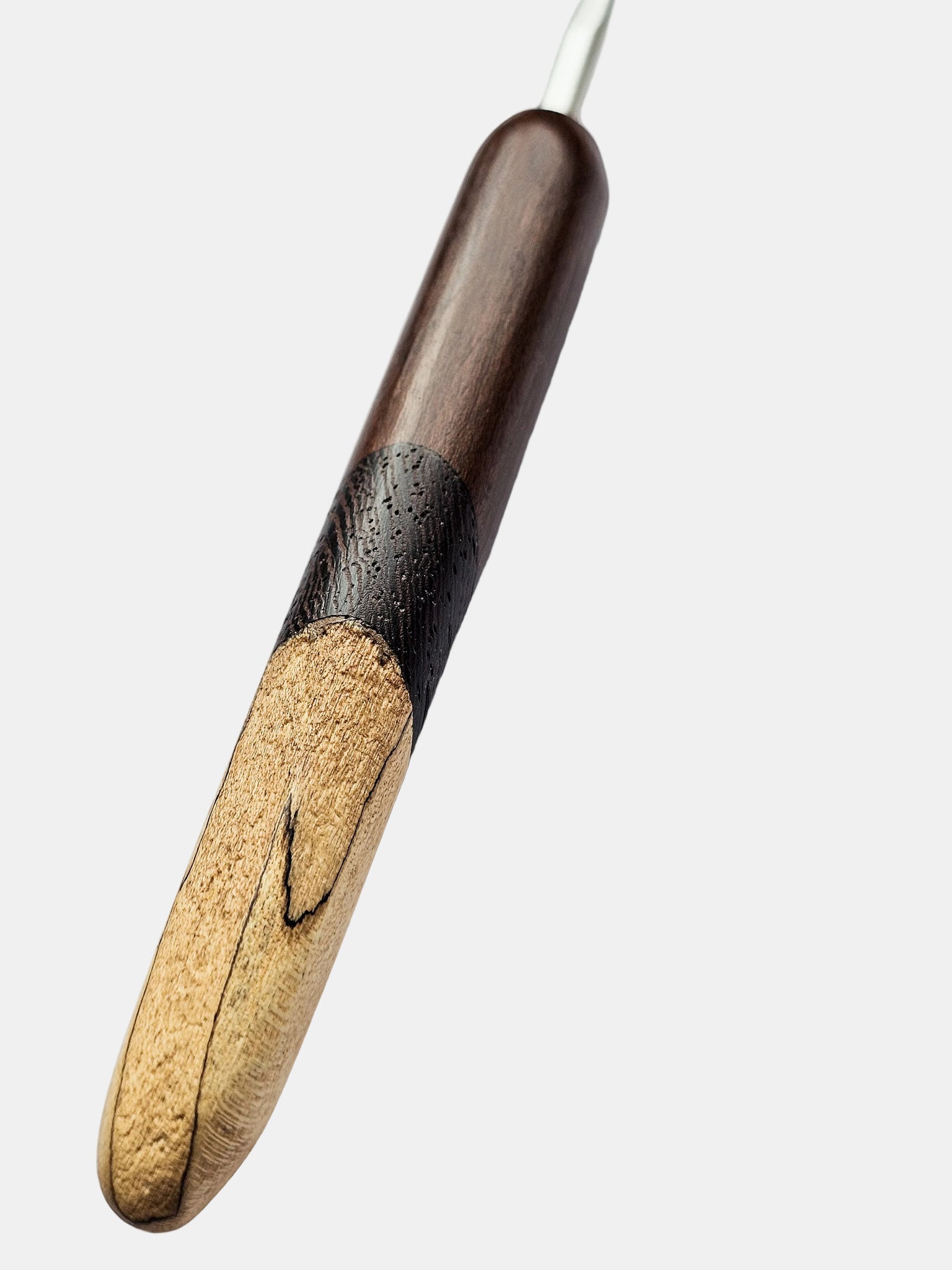 05.50mm Dark Roasted Maple +Wenge + Spalted Maple CLOVER Metal Crochet Hook (Item #163)