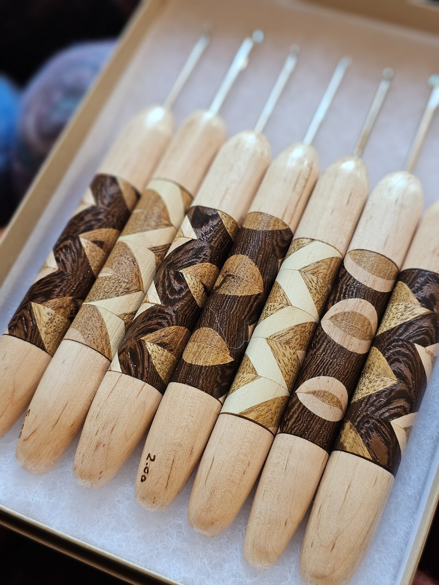 Each hook handle is sanded to yarn-worthy smoothness, and treated with a polyurethane wood sealant