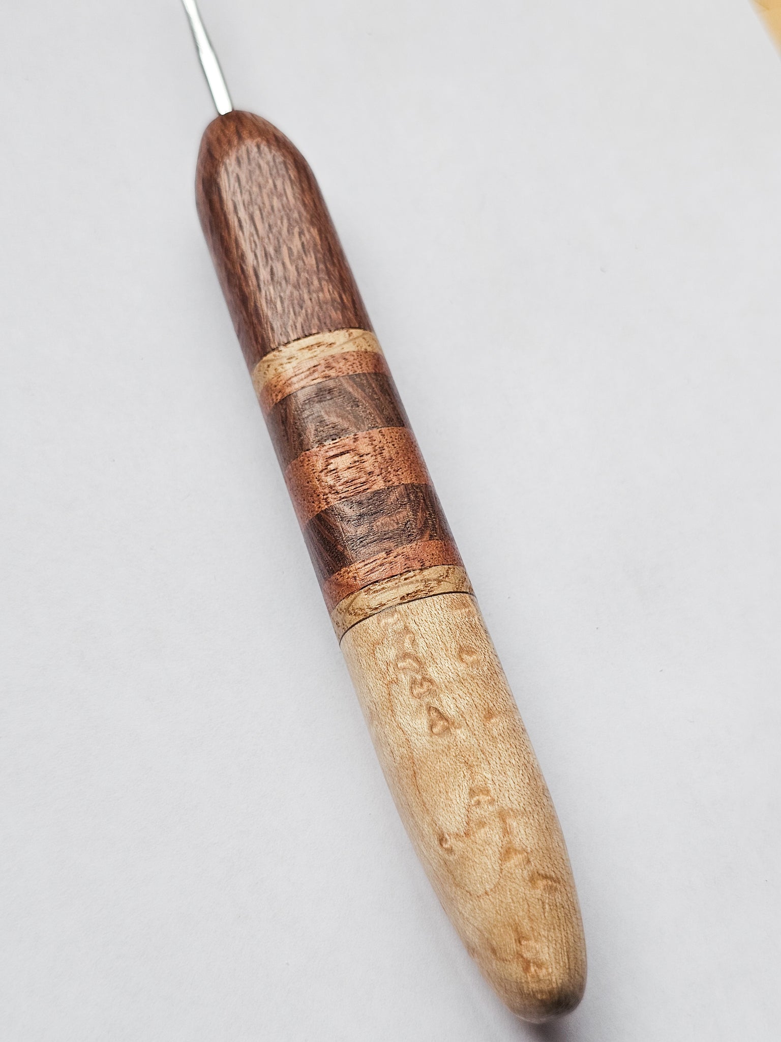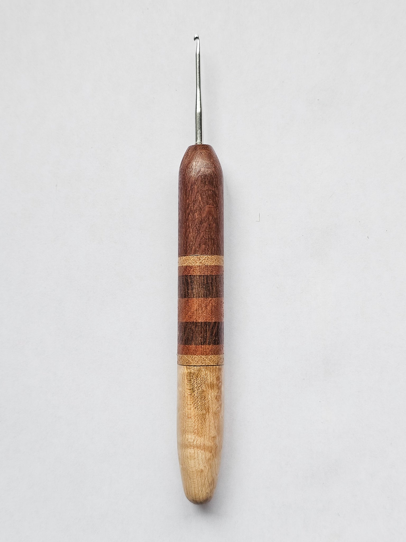 02.00mm Lacewood + Ash / Lacewood / Sapele Stripes + Birdseye Maple Metal Crochet Hook (Item #165)