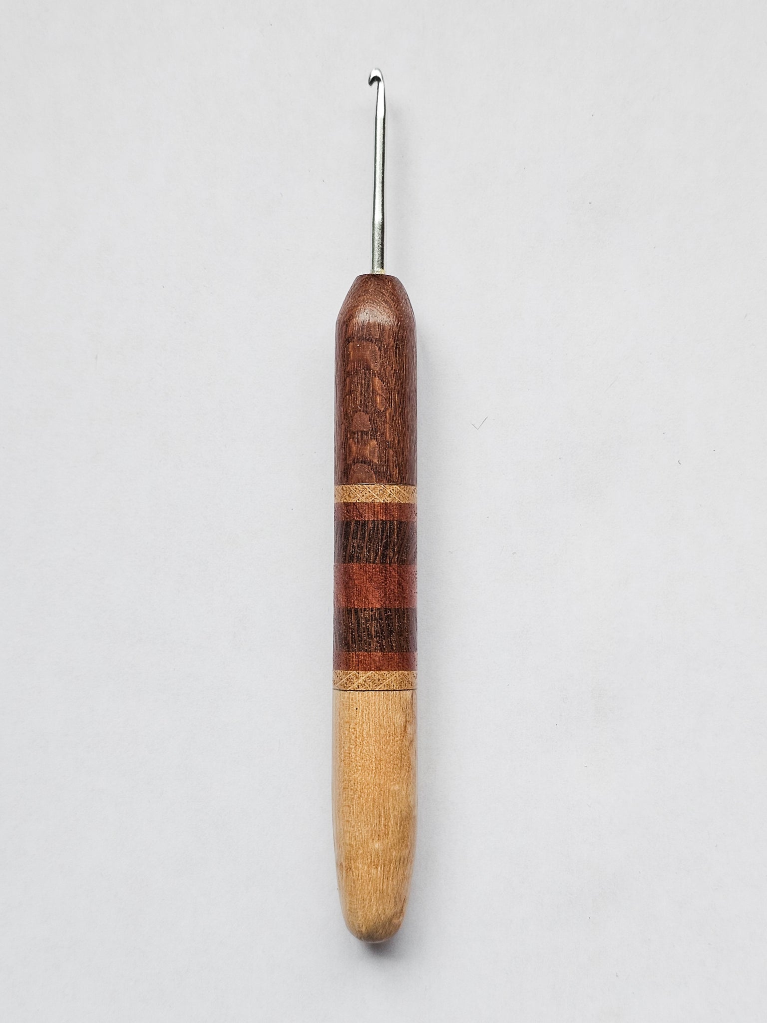 03.00mm Lacewood + Ash / Lacewood / Sapele Stripes + Birdseye Maple Metal Crochet Hook (Item #168)