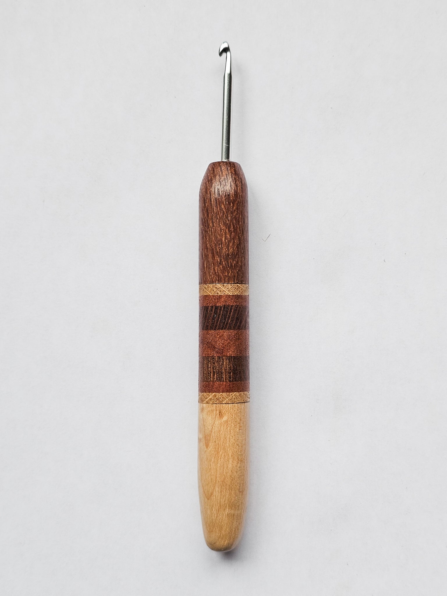 04.00mm Lacewood + Ash / Lacewood / Sapele Stripes + Birdseye Maple Metal Crochet Hook (Item #172)