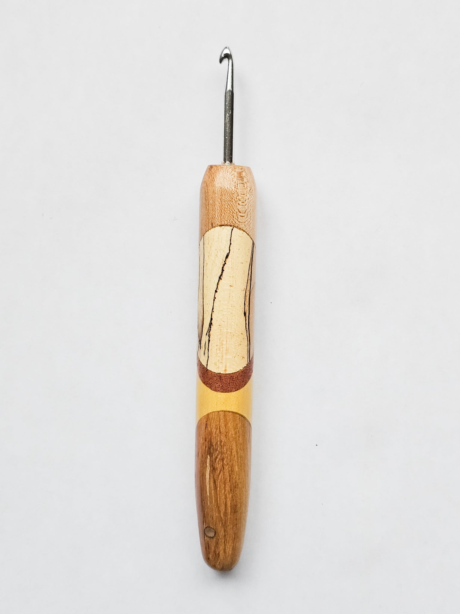 04.00mm Maple + Spalted Maple + Sapele + Yellowheart + Canary Art Deco Metal Crochet Hook (Item #187)