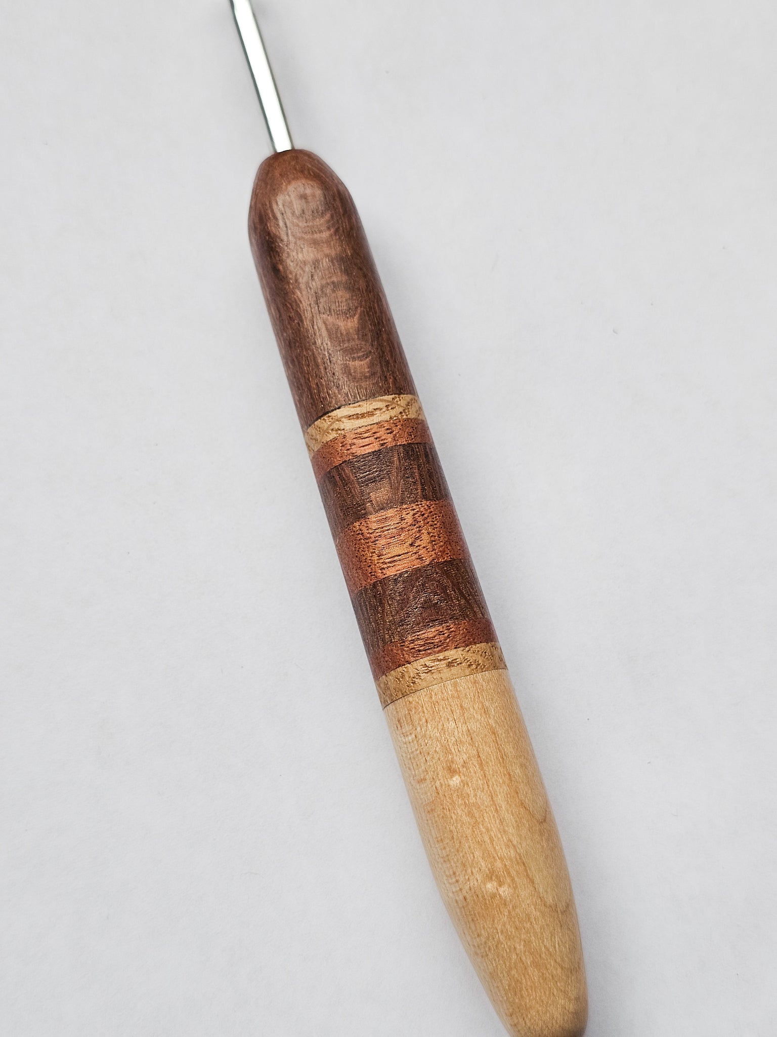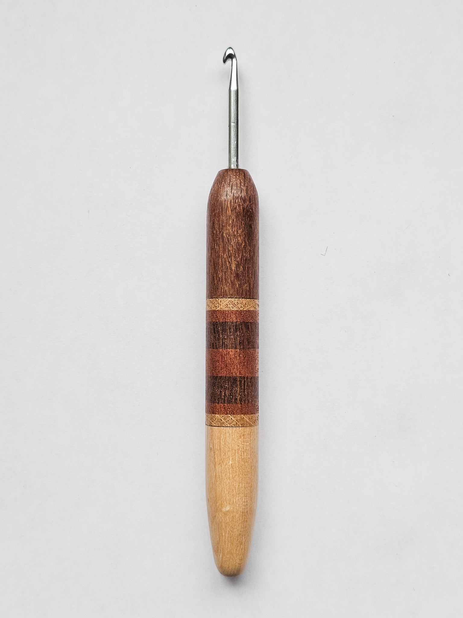 04.50mm Lacewood + Ash / Lacewood / Sapele Stripes + Birdseye Maple Metal Crochet Hook (Item #166)