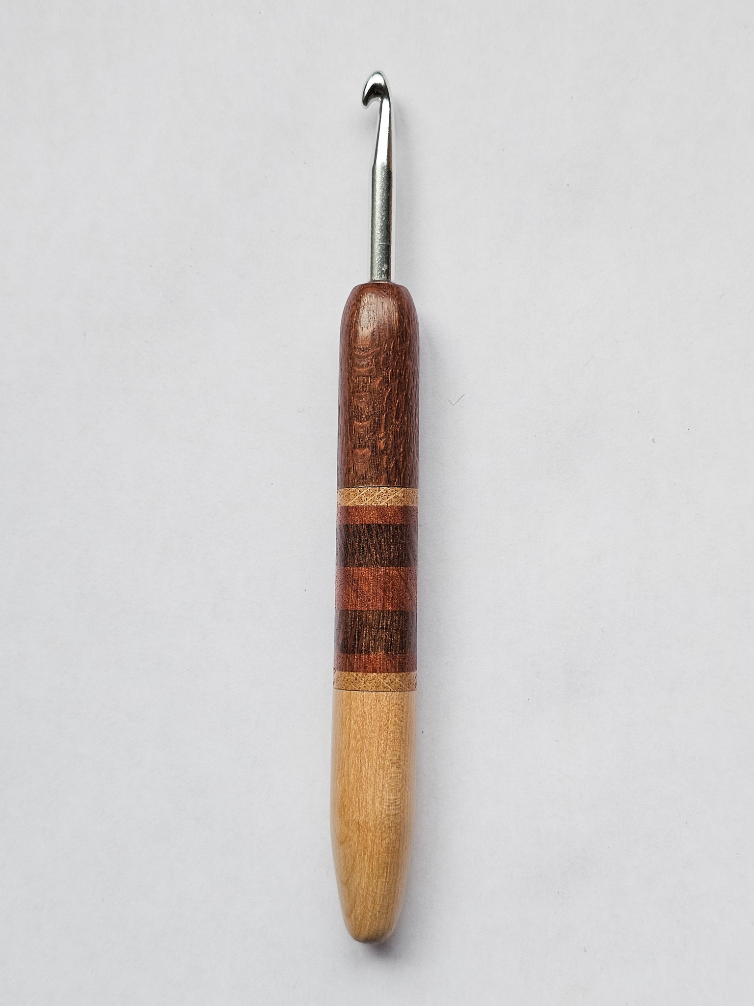 06.00mm Lacewood + Ash / Lacewood / Sapele Stripes + Birdseye Maple Metal Crochet Hook (Item #177)