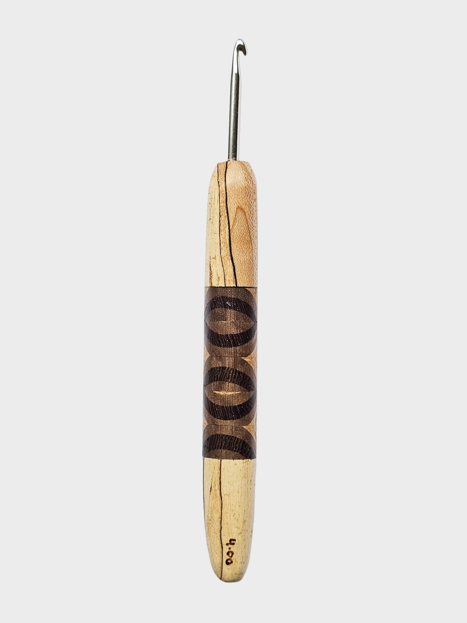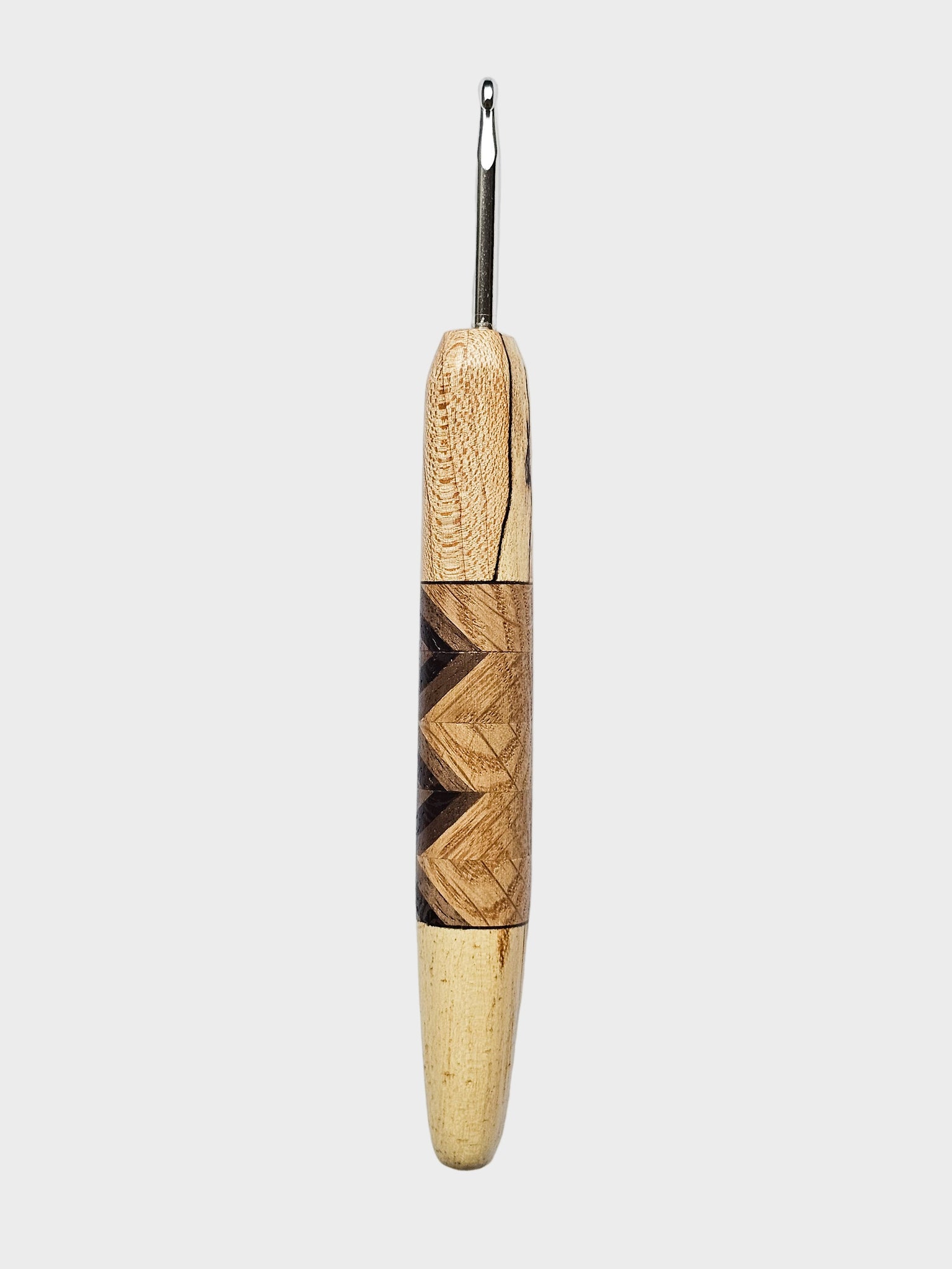 04.00mm Spalted Maple + Wenge / Walnut / Ash Zigzag Metal Crochet Hook (Item #202)